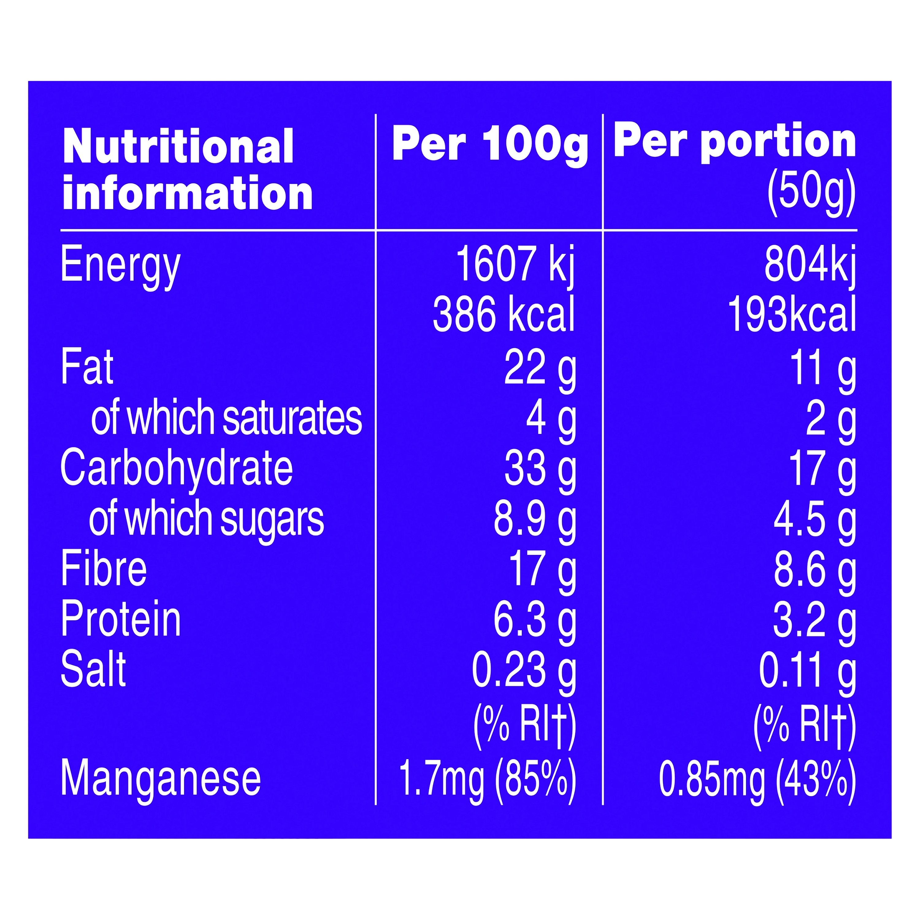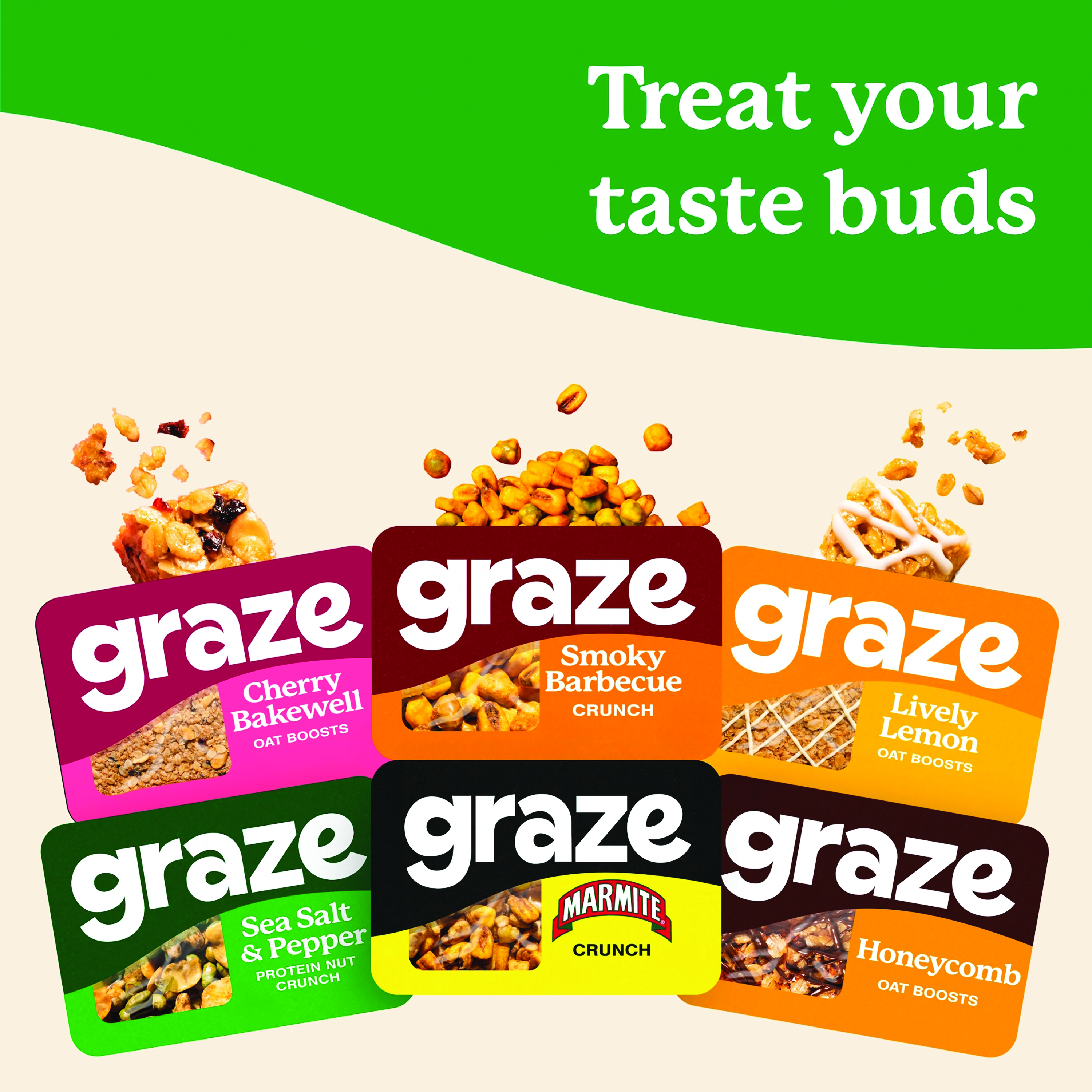 Graze have folded superfood cocoa nibs into whole oats for a delicious flapjack snack. This oat flapjack snack uses chicory root fibre, a naturally sweet ingredient, which means this recipe has 60% less sugar than the average cereal bar and still hits the sweet spot. These snacks are ideal for mid-morning snacks along with a coffee, giving an oat-fuelled boost. Supplied in a pack of 9 50g bars.