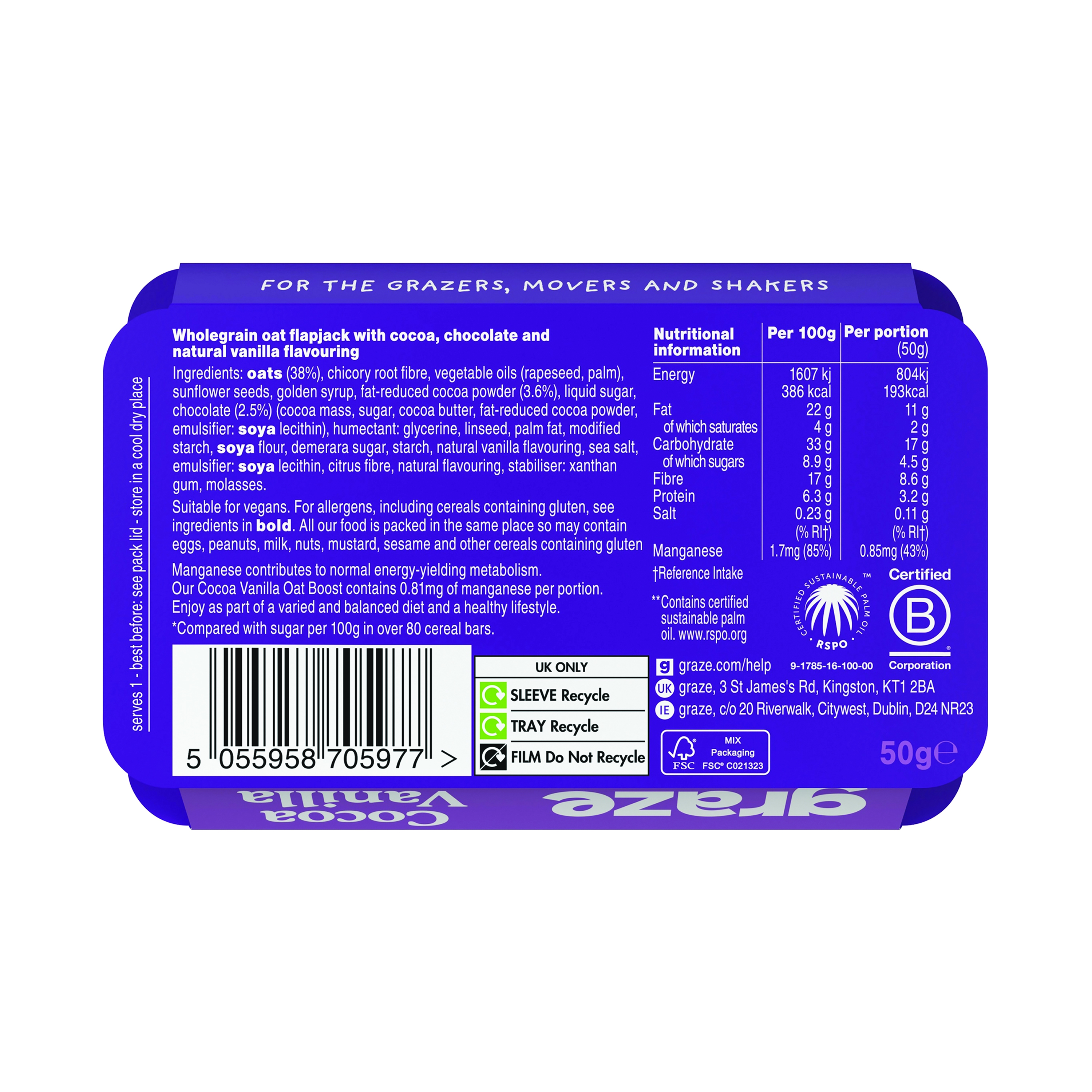 Graze Cocoa Vanilla Oat Boosts Flapjack Snack 50g (Pack of 9) C009513